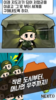 당신의 군대는 끊임없이 진화합니다. 병사와 장교의 생산력을 강화하고, 첨단 무기들의 전투 효율을 극대화하세요. 환생 시스템을 통해 더욱 강력한 부대로 거듭나며, 끝없는 성장의 길을 걸으십시오. 아프리카, 유럽, 아메리카, 아시아 대륙에 걸쳐 적에게 점령당한 주요 도시들을 하나씩 해방하고, 해방 보상으로 주어지는 지원금과 대륙 탈환 시 얻는 5배 버프를 활용하여 전력을 빠르게 증강시키세요. 구름소프트가 선사하는 이 서사적인 여정 속에서, 인류의 운명을 결정할 최후의 영웅이 되어 '그'의 야망을 완전히 분쇄하십시오.