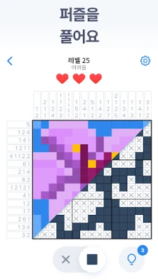 "노노그램"의 규칙은 직관적이면서도 깊이 있는 전략을 요구합니다. 각 줄과 열에 표시된 숫자를 단서 삼아 숨겨진 픽셀 아트를 찾아내세요. 연속된 블록 사이에는 반드시 빈 칸이 있어야 한다는 간단한 원칙만 기억하면 됩니다. 막히는 부분이 있다면 유용한 힌트 기능을 활용하고, 이미 완성된 줄은 자동 크로스 기능으로 편리하게 채워나가세요. 올바르지 않은 칸은 'X'로 표시하여 퍼즐 풀이의 효율을 높일 수 있습니다. 몰입감 넘치는 규칙과 똑똑한 보조 기능이 결합된 "노노그램"은 누구나 쉽게 시작하고 깊이 빠져들 수 있는 최고의 로직 퍼즐 경험을 선사합니다.
