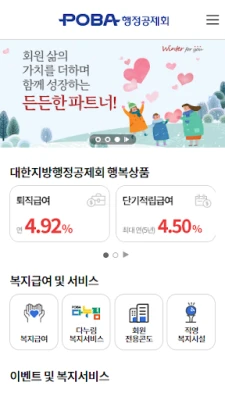 대한지방행정공제회는 회원님의 오늘과 내일이 더욱 행복하고 풍요로울 수 있도록 끊임없이 노력합니다. 이 모바일 서비스를 통해 회원님 개개인의 삶에 깊이 공감하고, 실질적인 도움을 제공하며, 밝은 미래를 함께 그려나가는 동반자로서의 역할을 충실히 이행하겠습니다. 회원님의 만족을 위해 항상 귀 기울이고 발전하는 대한지방행정공제회의 변함없는 약속을 경험해 보십시오.